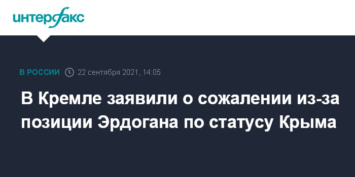 Москва. 22 сентября. INTERFAX.RU - В Кремле сожалеют в связи с заявлением президента Турции Реджепа Тайипа Эрдогана о непризнании принадлежности Крыма России, заявил пресс-секретарь президента РФ Дмитрий Песков.