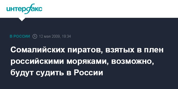 Москва. 12 мая. INTERFAX.RU - Группа сомалийских пиратов, плененных российскими военными моряками, может быть привлечена к уголовной ответственности, заявили в генеральной прокуратуре РФ.