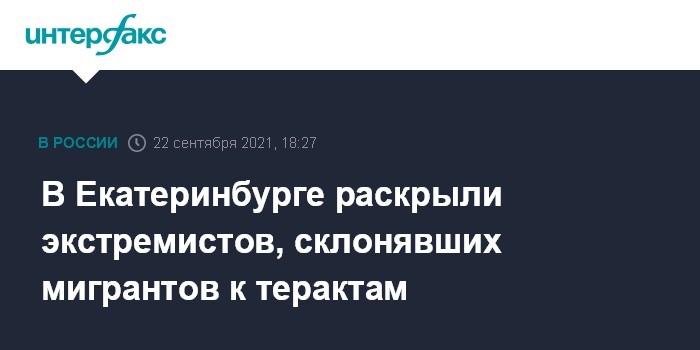 Москва. 22 сентября. INTERFAX.RU - Члены религиозно-экстремистской ячейки в Екатеринбурге из числа приезжих из Центральной Азии задержаны по подозрению в склонении мигрантов к террористическим преступлениям, говорится в сообщении центра общественных связей ФСБ, поступившем в среду в "Интерфакс".