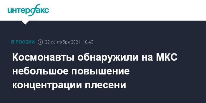 Москва. 22 сентября. INTERFAX.RU - Космонавты Сергей Рыжиков и Сергей Кудь-Сверчков зафиксировали на МКС превышение концентрации плесени в старейшем модуле МКС, сообщает журнал Центра подготовки космонавтов "Пилотируемые полеты в космос".