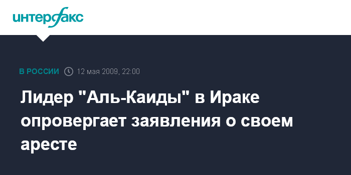 Дубай. 12 мая. INTERFAX.RU - Один из возможных лидеров "Аль-Каида" в Ираке Абу Омар Багдади опроверг сообщения об аресте иракскими спецслужбами сообщает Американский центр наблюдения за исламистскими сайтами.