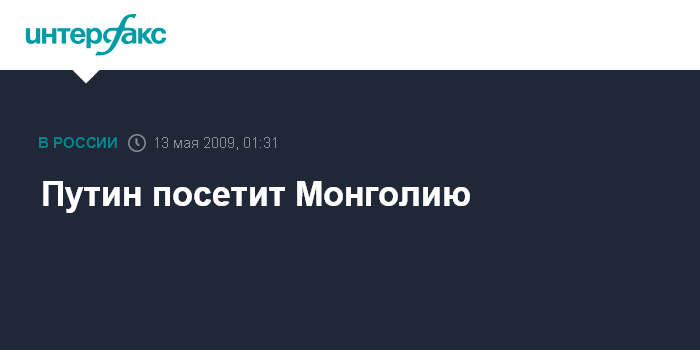 Москва. 13 мая. ИНТЕРФАКС - Председатель правительства РФ Владимир Путин 13 мая по приглашению премьер-министра Монголии Санжагийна Баяра посетит с рабочим визитом Улан-Батор.