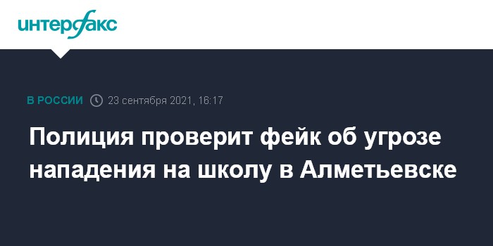 Москва. 23 сентября. INTERFAX.RU - В Алметьевске полиция начала проверку после сообщения в классном чате в мессенджере о возможном нападении на одну из школ города, сообщила начальник управления образования Альметьевского района Ирина Павловская.