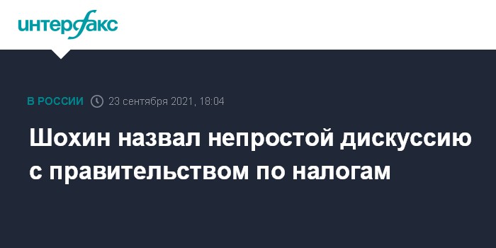 Москва. 23 сентября. INTERFAX.RU - Дискуссия бизнеса и чиновников о новых налогах для металлургов была непростой и потребовала круглосуточных усилий, чтобы успеть до конца сентября прийти к окончательному решению по поправкам в Налоговый кодекс, заявил глава Российского союза промышленников и предпринимателей Александр Шохин.