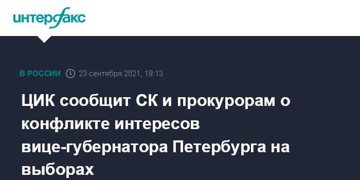 ЦИК сообщит СК и прокурорам о конфликте интересов вице-губернатора Петербурга на выборах