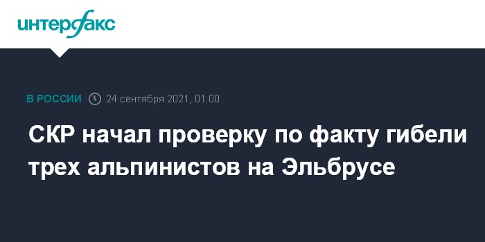 Москва. 24 сентября. INTERFAX.RU - Доследственная проверка начата по факту гибели трех альпинистов на горе Эльбрус, сообщает пресс-служба СК РФ по Кабардино-Балкарской республике.