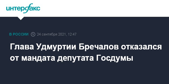 Москва. 24 сентября. INTERFAX.RU - Глава Удмуртии Александр Бречалов, возглавлявший список "Единой России" на выборах в республике, отказался от депутатского мандата, сообщила в пятницу его пресс-служба.