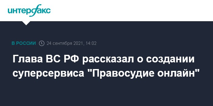 Москва. 24 сентября. INTERFAX.RU - Председатель Верховного суда России Вячеслав Лебедев рассказал о создании суперсервиса "Правосудие онлайн", который позволит участникам судопроизводства реализовать в дистанционной форме весь объем процессуальных действий, включая участие в судебном заседании посредством веб-конференции.