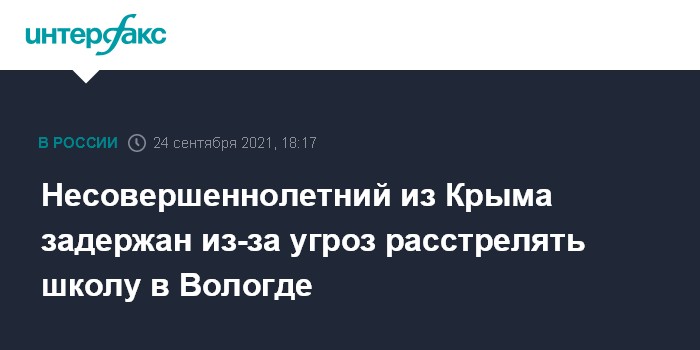 Как уточнил "Интерфаксу" информированный источник, информацию о якобы готовящемся расстреле людей в одной из школ Вологды опубликовал в телеграм-канале несовершеннолетний из Республики Крым. Он уже задержан.
