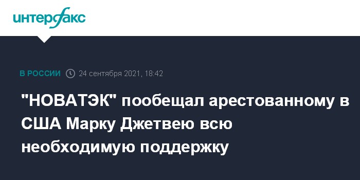"Насколько нам известно из сообщений правоохранительных органов США, в настоящее время Джетвей находится в процессе судебного разбирательства в США в отношении предполагаемой неуплаты персональных налогов. Компания не имеет отношения к процессу и не обладает деталями разбирательства. "НОВАТЭК" следит за развитием ситуации и будет оказывать всю необходимую поддержку", - отмечается в тексте.