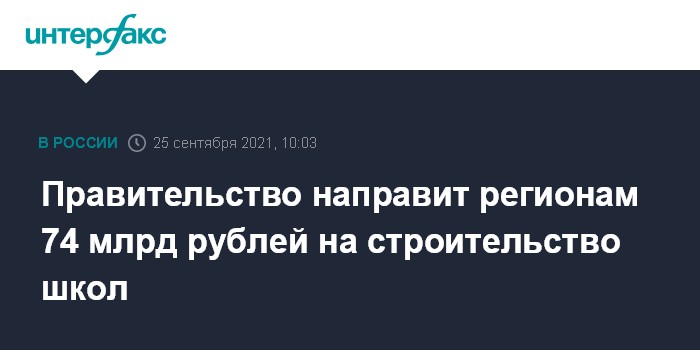 Правительство направит регионам 74 млрд рублей на строительство школ