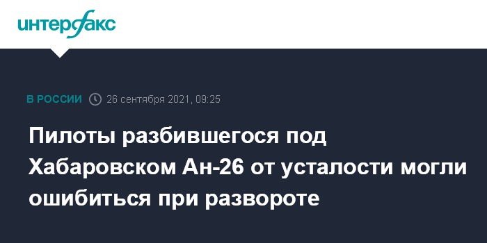 Москва. 26 сентября. INTERFAX.RU - Ошибка пилотирования, по предварительным данным, спровоцировала катастрофу Ан-26 под Хабаровском, сообщил "Интерфаксу" информированный источник.