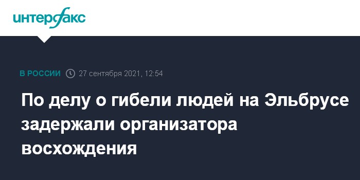 Москва. 27 сентября. INTERFAX.RU - Организатор восхождения на Эльбрус, в ходе которого погибли пять человек, задержан в Кабардино-Балкарии, сообщили "Интерфаксу" в пресс-службе следственного управления СКР по республике.