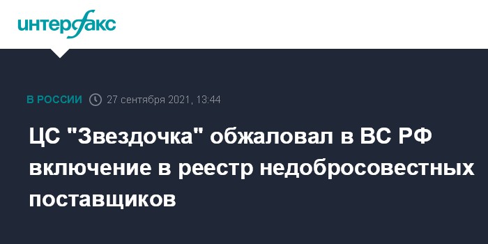 ЦС "Звездочка" обжаловал в ВС РФ включение в реестр недобросовестных поставщиков