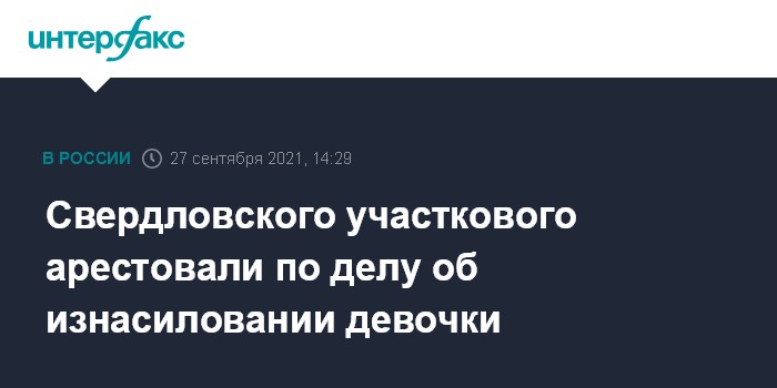 Москва. 27 сентября. INTERFAX.RU - Суд заключил под стражу двух фигурантов дела об изнасиловании 12-летней девочки в Первоуральске (Свердловская область), в том числе участкового уполномоченного полиции, сообщает пресс-служба регионального следственного управления СКР.