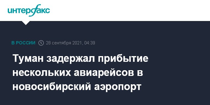 Москва. 28 сентября. INTERFAX.RU - Прилет нескольких рейсов в Новосибирск задерживается во вторник утром из-за сильного тумана, сообщили "Интерфаксу" в пресс-службе новосибирского аэропорта Толмачево.