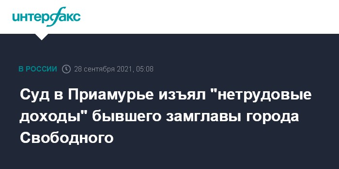 "Свободненский городской суд удовлетворил исковое заявление прокуратуры об обращении в доход государства имущества бывшего заместителя главы администрации города Свободного (...) на сумму около 100 млн рублей", - говорится в сообщении.