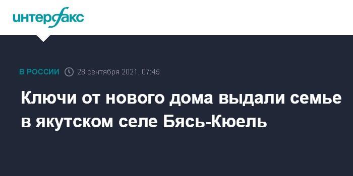 "Ключи вручены семье Екатерины и Алексея Саввиных. Именно их дом отстроен одним из первых в микрорайоне "Кэскил" села Бясь-Кюель", - сообщает во вторник пресс-служба главы и правительства Якутии.