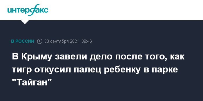 Москва. 28 сентября. INTERFAX.RU - Травмирование годовалого ребенка при посещении крымского парка львов "Тайган" стало причиной возбуждения уголовного дела о небезопасных услугах. Об этом сообщается на сайте главного следственного управления СКР по Крыму и Севастополю во вторник.