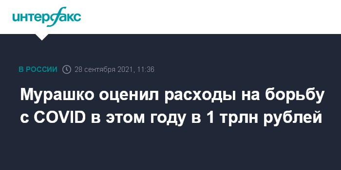 Москва. 28 сентября. INTERFAX.RU - Минздрав РФ рассчитывает, что расходы на борьбу с коронавирусной инфекцией в России в 2021 году составят около 1 трлн рублей, заявил во вторник министр здравоохранения Михаил Мурашко.