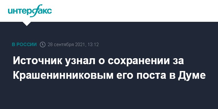 Источник узнал о сохранении за Крашенинниковым его поста в Думе