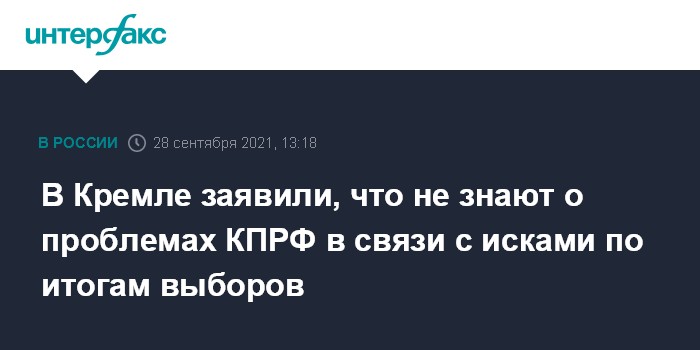 Москва. 28 сентября. INTERFAX.RU - Пресс-секретарь президента России Дмитрий Песков заявил, что в Кремле не осведомлены о ситуации с проблемами у КПРФ при подаче исков по итогам дистанционного электронного голосования (ДЭГ) в Москве. Он отметил, что право на обращение в суд закреплено в законе.
