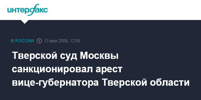 Москва. 13 мая. INTERFAX.RU – Тверской суд Москвы выдал санкцию на арест вице-губернатора Тверской области Анатолия Бушина, подозреваемого в присвоении или растрате.
