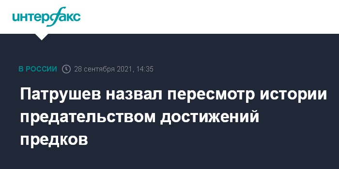 Москва. 28 сентября. INTERFAX.RU - Переписывание истории, в том числе, стран, ранее входивших в состав СССР, означает предательство великих достижений прошлого, заявил журналистам в ходе рабочей поездки на Сахалин секретарь Совета безопасности Николай Патрушев.