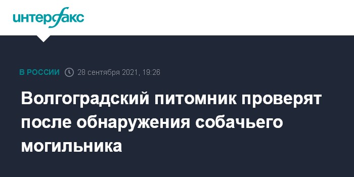Москва. 28 сентября. INTERFAX.RU - Инспекторы Росприроднадзора проверят волгоградский городской питомник после того, как в августе в Ворошиловском районе города нашли массовое захоронение собак с бирками, объявила глава ведомства Светлана Радионова. По ее словам, проверку проводят также следователи, прокуроры и полиция.