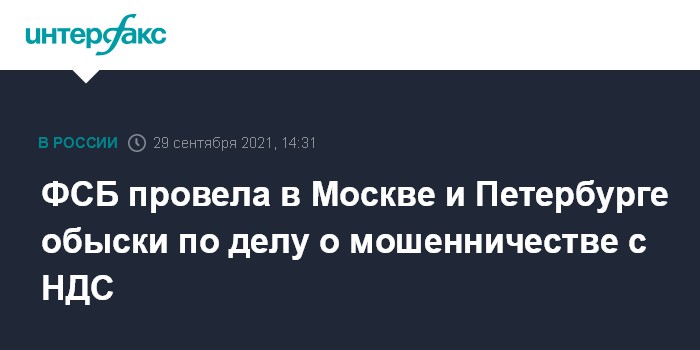 ФСБ провела в Москве и Петербурге обыски по делу о мошенничестве с НДС