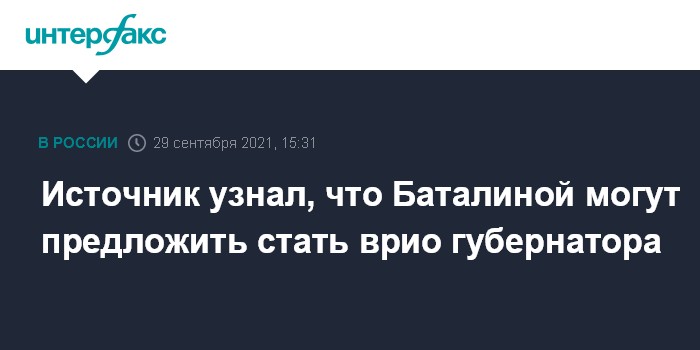 По его данным, Баталиной могут предложить возглавить администрацию Владимирской области.