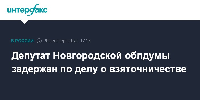 Москва. 29 сентября. INTERFAX.RU - Депутата Новгородской областной думы задержали по подозрению во взяточничестве, сообщила в среду пресс-служба регионального управления СК.
