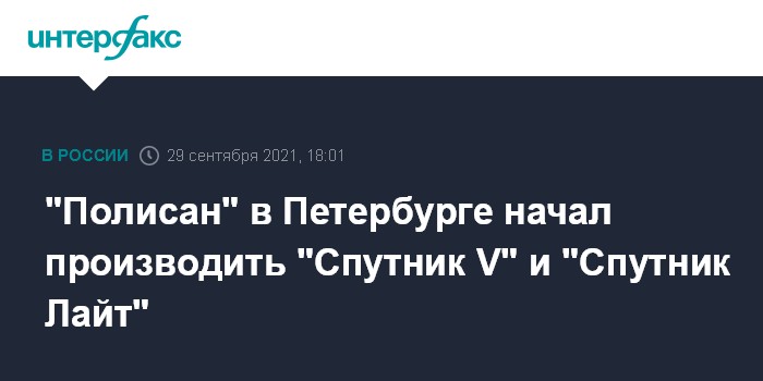 Москва. 29 сентября. INTERFAX.RU - ООО "Научно-технологическая фармацевтическая фирма "Полисан" на собственном заводе в Петербурге запустило линию для производства вакцин от коронавируса "Спутник V" и "Спутник Лайт". Об этом сообщает пресс-служба губернатора города.