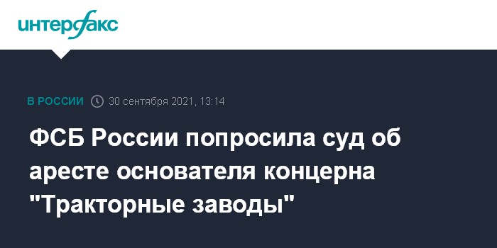ФСБ России попросила суд об аресте основателя концерна "Тракторные заводы"