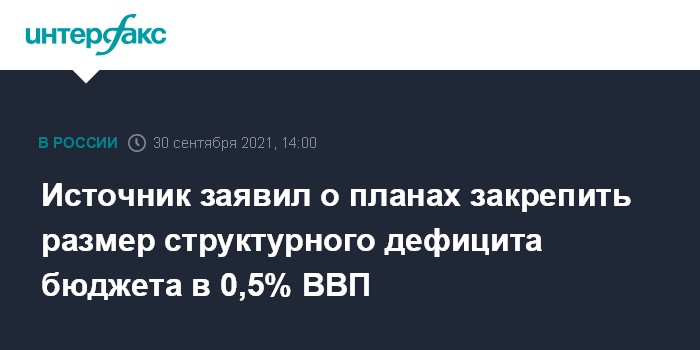 Источник заявил о планах закрепить размер структурного дефицита бюджета в 0,5% ВВП