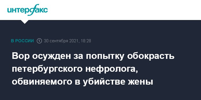 Москва. 30 сентября. INTERFAX.RU - Петроградский суд Петербурга приговорил к 1,5 годам колонии особого режима вора, который попытался обокрасть опечатанную квартиру бывшего главного нефролога города Александра Земченкова, обвиняемого в убийстве супруги, сообщает объединенная пресс-служба судов северной столицы,.
