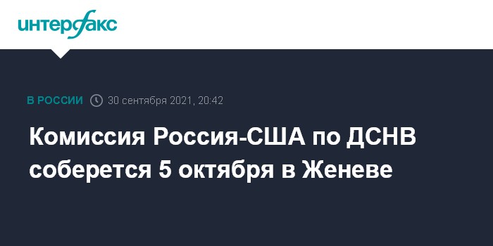 Комиссия Россия-США по ДСНВ соберется 5 октября в Женеве