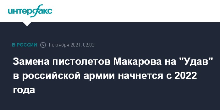 Москва. 1 октября. INTERFAX.RU - Минобороны РФ с 2022 года начнет закупку новых пистолетов "Удав" в двух комплектациях, сообщил главнокомандующий Сухопутными войсками Олег Салюков в интервью ведомственной газете "Красная звезда".
