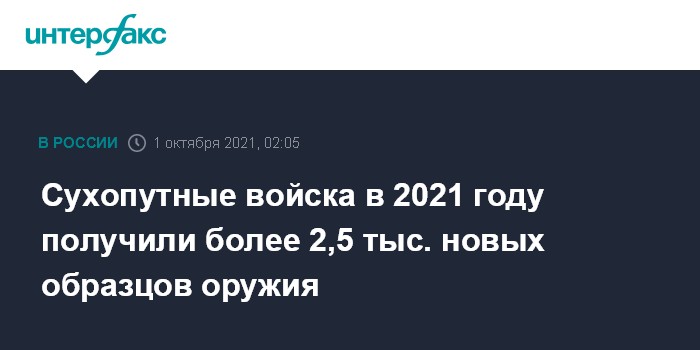 "С целью повышения боевых возможностей и обновления парка техники в 2021 году в соединения и воинские части Сухопутных войск поступает более 2500 новых основных образцов вооружения, военной и специальной техники", - сказал он в интервью газете Минобороны РФ "Красная Звезда".