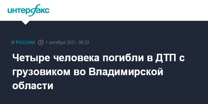 "1 октября около 02:50 на 327 км ФАД М-7 "Волга" в Гороховецком районе произошло дорожно-транспортное происшествие с погибшими и пострадавшими. По состоянию на 05.00 известно о 4 погибших пассажирах микроавтобуса и 5 пострадавших. Все пострадавшие доставлены в медицинское учреждение", - говорится в сообщении.