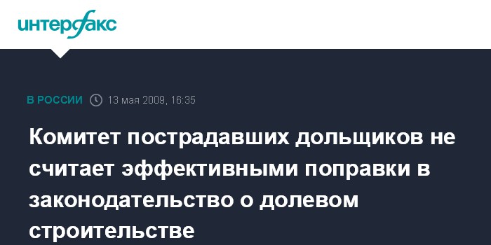 Комитет пострадавших дольщиков не считает эффективными поправки в законодательство о долевом строительстве