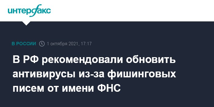 Москва. 1 октября. INTERFAX.RU - В связи с рассылкой фишинговых писем от якобы Федеральной налоговой службы (ФНС) с трех подставных электронных адресов рекомендуется обновить антивирусные средства и проверять с их помощью входящую почту, сообщает в пятницу Национальный координационный центр по компьютерным инцидентам (НКЦКИ).