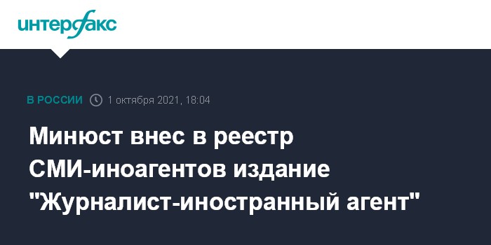 Минюст внес в реестр СМИ-иноагентов издание "Журналист-иностранный агент"