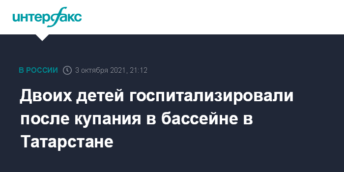 Москва. 3 октября. INTERFAX.RU - Двоих детей доставили в больницу в Татарстане после посещения бассейна, сообщили в воскресенье "Интерфаксу" в пресс-службе Минздрава республики.