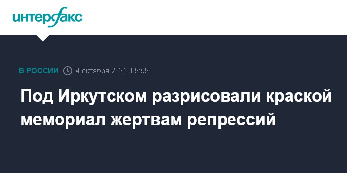 Москва. 4 октября. INTERFAX.RU - В ночь на понедельник в поселке Пивовариха неизвестные разрисовали краской из баллончиков Мемориал жертвам политических репрессий, сообщила пресс-служба правительства Иркутской области. Мемориал отчистили сотрудники областного Центра по сохранению историко-культурного наследия.