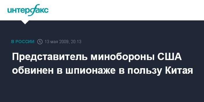 Вашингтон. 13 мая. ИНТЕРФАКС - Сотрудник министерства обороны США, бывший служащий ВВС обвинен в шпионаже в пользу Китая, сообщило в среду американское министерство юстиции.