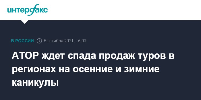 АТОР ждет спада продаж туров в регионах на осенние и зимние каникулы