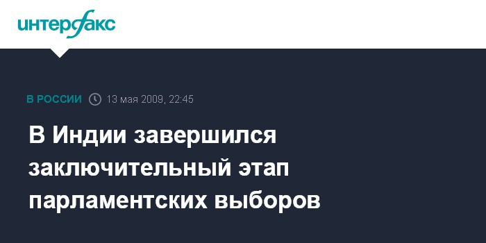 Вашингтон. 13 мая. ИНТЕРФАКС - Голосование в рамках пятого, заключительного этапа парламентских выборов завершилось в среду в Индии, сообщил американский телеканал Си-Эн-Эн.