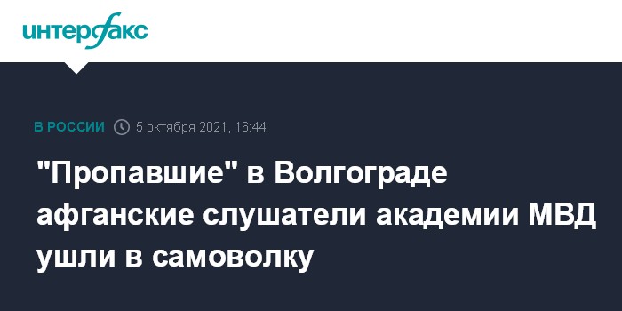Москва. 5 октября. INTERFAX.RU - Пятеро афганских полицейских, проходивших обучение в Волгоградской академии МВД и объявленных накануне в розыск, найдены.