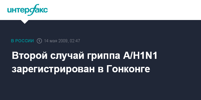 Пекин. 14 мая. ИНТЕРФАКС-КИТАЙ - В Гонконге зафиксирован второй случай заболевания гриппом A/H1N1, сообщило в среду министерство здравоохранения КНР.